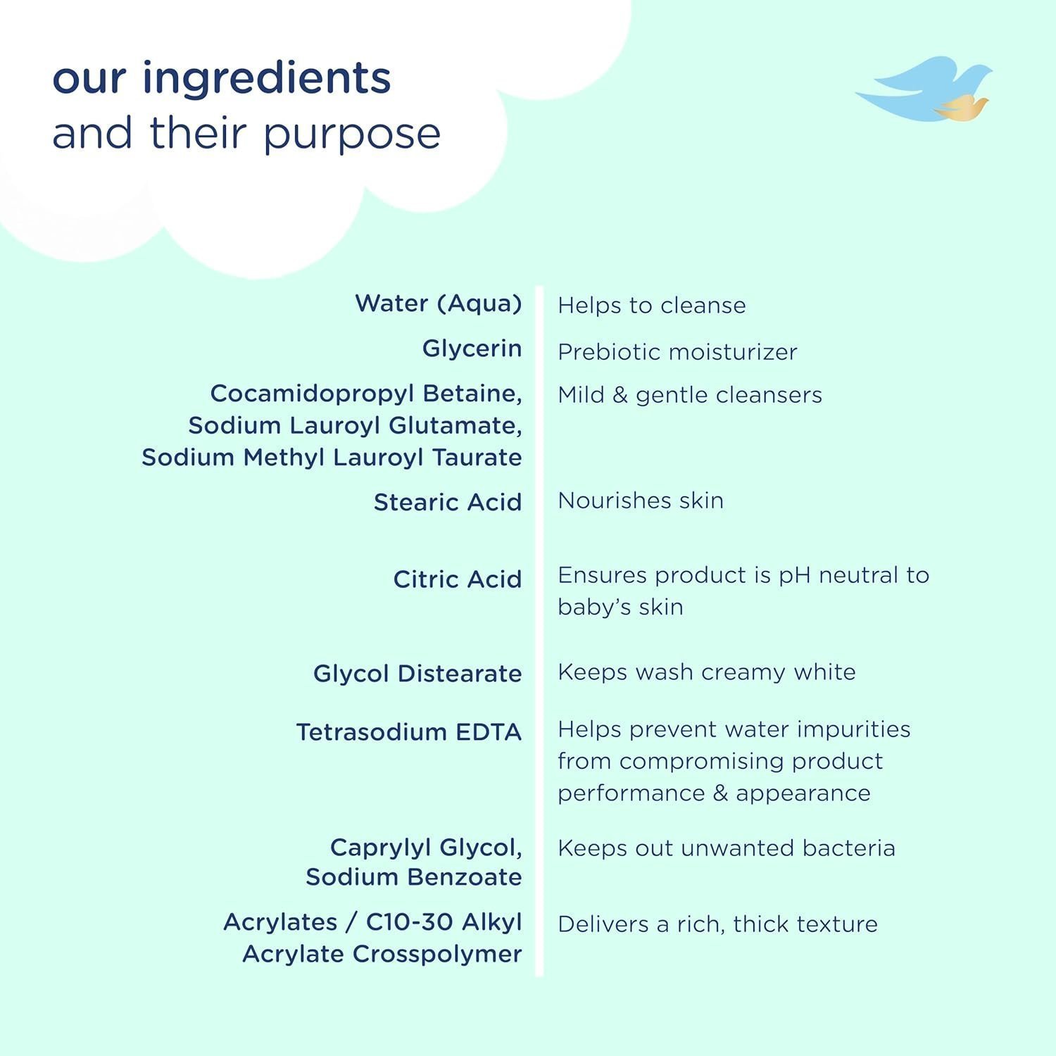 - GENTLE CLEANSING – Baby Dove Fragrance-Free Moisture Wash is designed for delicate skin. This hypoallergenic wash combines 100% skin-natural nutrients with a mild formula for a soothing bath experience, gently cleaning whilst helping to maintain your baby’s skin softness. Our nutrients are identical to those naturally found in skin.