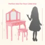 The tri-folding mirror lets children view their creations from multiple angles, while the drawer provides convenient storage for small toys and pretend makeup items. With a height of 27 inches and closed storage capacity under 3.2 cubic feet, it’s a compact yet stylish addition to a child’s room. This vanity requires no electricity, making it eco-friendly and easy to maintain. Whether used for daily play or special occasions, the Kids Princess Vanity Set enhances a child’s room and encourages delightful, imaginative play.