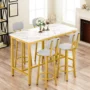 The Lamerge Modern Dining Table Set brings style and practicality to your dining space. This elegant set includes a faux marble dining table paired with four ergonomically designed stools, creating the perfect setup for family meals, casual get-togethers, or even working from home. Its glam-inspired design features a sturdy metal frame, ensuring durability and long-lasting use. The mixed-color finish adds a chic, contemporary flair, making it a standout piece in any kitchen or dining room.