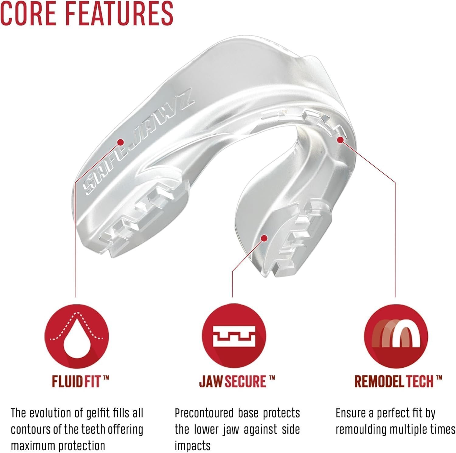 - BESPOKE FIT – SAFEJAWZ offers amazing retention and a secure fit thanks to our FLUID FIT️ technology. It will fill the contours of your teeth and stay in the mouth – exactly where it’s meant to be! Bespoke fitting in less than a minute!