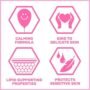 - Calming formula with Camomile soothes sensitive skin.