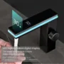 Enhance your bathroom experience with the SOQO Smart Digital Display Bathroom Faucet, a modern, single-hole deck-mounted fixture designed to elevate both style and functionality. This faucet features an innovative LED temperature display, allowing you to monitor water temperature at a glance, adding an element of safety and convenience. Made from high-quality brass with a smooth chrome finish, this faucet is built to resist rust and corrosion, maintaining its sleek appearance over time. The ceramic valve core provides reliable operation, reducing leaks and ensuring a steady flow.