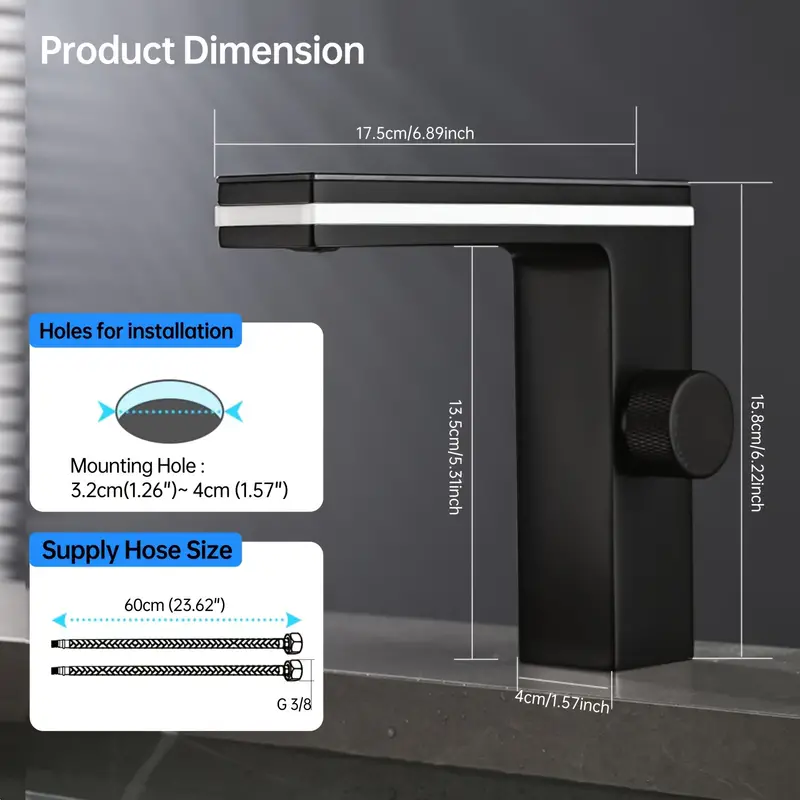 Designed to be energy-efficient, this faucet operates without electricity or batteries, making it an eco-friendly choice for any home. Its US-standard G9/16 nozzle and built-in water inlet allow for easy, hassle-free installation. Whether updating a powder room or main bathroom, the SOQO faucet brings modern elegance and smart functionality together, fitting effortlessly into any decor. This faucet by SOQO is perfect for those seeking durability, modern design, and convenience in one stylish fixture.