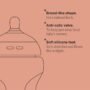 - Feels like mum: Soft smooth silicone teat feels closer to skin and flexes like mum
